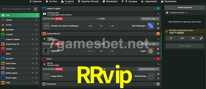 A aposta RRvip oferece aos jogadores a experiência mais conveniente de apostas em eSports!